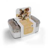 Houdt vocht vast, bevordert een gelijkmatige groei van de paddenstoelen en beschermt het substraat tegen besmetting.
