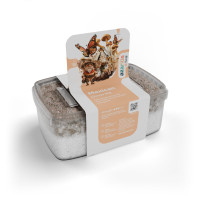 Houdt vocht vast, bevordert een gelijkmatige groei van de paddenstoelen en beschermt het substraat tegen besmetting.
