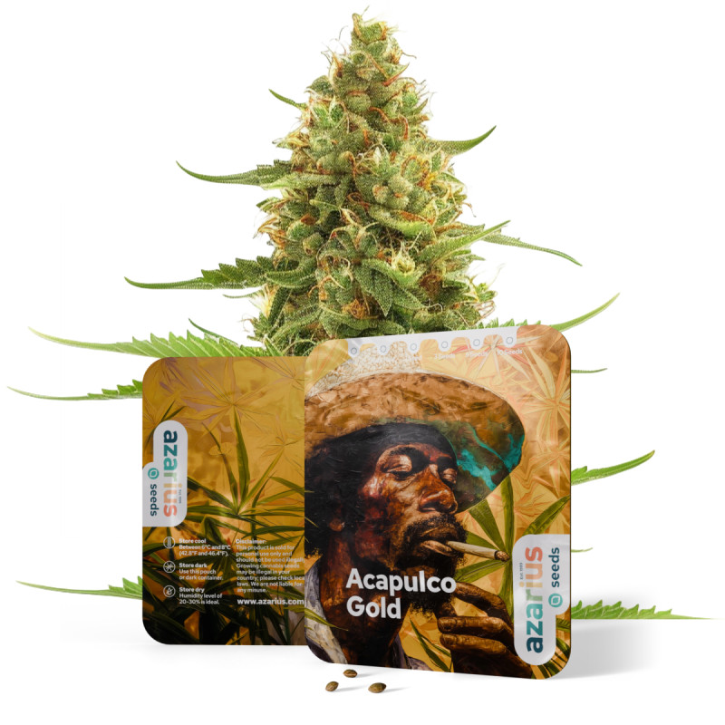 Acapulco Gold is een overwegend Sativa ras (80% Sativa, 20% Indica) bekend om zijn citrus-, fruitige en citroenachtige smaken en gematigde THC-niveaus (15-19%). Het biedt euforische, energiegevende effecten, wat het ideaal maakt voor gebruik overdag. Kieming duurt 24-120 uur en bloei duurt 10-12 weken.
