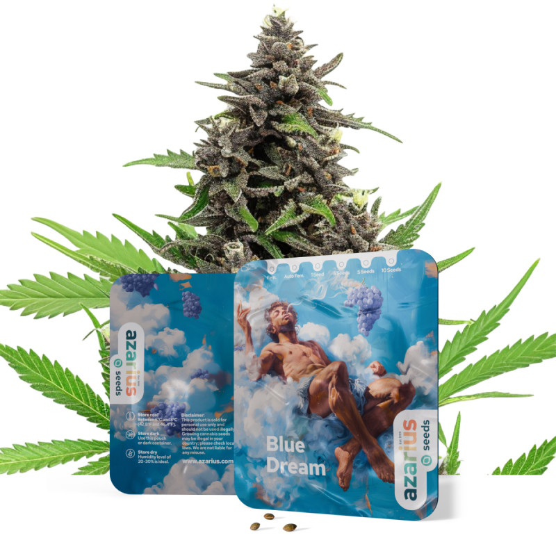 Ervaar het beste van Haze en DJ Short's iconische Blueberry met de fruitige en productieve Blue Dream van Azarius Seeds.